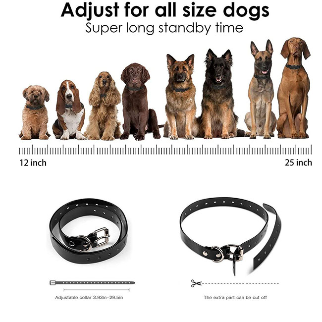 7.Waterproof and rechargeable collar of the dog containment system fits dog neck sizes 8 to 21 inches (Small/Medium/Large/Extra Large Dogs).