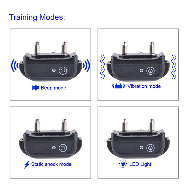 Upgrade Version Dog Trainer:It has 4 training modes of Beep, Vibration, Flash Light and Shock that allows you to freely contain your dog's behavior, such as annoyed Barks, crazy Runs, sudden Aggression and other bad actions. The vibration intensity and beep frequency are 0-7 levels adjustable for your option based on dog sizes and nature.